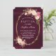 Royal Burgundy Pink Floral Gold Frame Girl Baptism Invitation