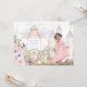 This darling invitation features a princess with black hair and dark skin standing near a royal carriage frame that surrounds all the fun party details. The back of this invitation has a coordinating castle. Colours include: Pink, purple, lavender, grey and green. You can personalise with all your party details. Perfect for princess theme or castle theme!