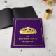 We've repurposed this guest book into a one-of-a-kind scrapbook, your one of a kind that is, once you personalise it. Exterior is shown with a royal crown print and a in gilded real gold foil. You don't have to be a royal to use it! Preselected text for your name or title, but you can change it. The back and spine are the same colour foil. Inside we've chosen for you unlined paper. Choose gold foil, rose gold or silver foil. Paper choices between unlined white, solid black [as shown] or lined white. Exterior cover is shown in dark Purple. Customise this item to any colour you wish and remember to personalise your name/title and remember to personalise the title on the book's spine and the year on the back!