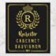 Serve your guests in style with these custom, royalty-inspired wine labels. Designed in black and faux gold, the design includes a geometric frame in classy Art Deco style with an elegant laurel wreath and crown motif. Your personalised monogram letter fills the centre, along with more text of your choosing. You can also "customise" to alter the design or change the black background colour to another shade.