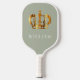 Personalised Royal Faux Gold Crown Sage Green Customised Name Pickleball Paddle.