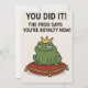 A smug green frog wearing a golden crown lounges proudly on a red velvet cushion, declaring: “You did it! The frog says you’re royalty now!” This humourous and quirky congratulatory design is perfect for graduations, achievements, or any moment worth celebrating with a royal touch and a bit of sass.