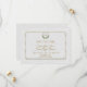 Symbol of elegance, abundance and loftiness! Unique card design featuring a Royal faux gold foil crest, a delicate frame, olive branches with a white flower on a white textured background. Use Customise tool to add your info. For matching items, please, visit my Royal Gold Crest Lush Greenery Wedding Collection.