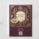 Bring the yester golden age of baroque in your wedding with Royal Golden Burgundy Baroque Ivory Tulips Wedding Invitation card. In royal courts, particularly under the reign of Louis XIV of France - Baroque aesthetics reached their peak. Palaces such as Versailles became symbols of power and luxury, adorned with gold leaf detailing, ornate carvings, and opulent decorative patterns. This wedding invitation draws inspiration from these historic influences. The gold ornamental frame reflects the grandeur of palace interiors, while the symmetrical layout mirrors the structured elegance of Baroque design principles. The backdrop of this invitation card is rich burgundy with soft gold accents and ivory framework. Reverse side has a matching pattern with soft ivory tulip. The text uses a modern script to enhance the clarity. You can easily customize the template, put your own words and watch it transform to your liking.