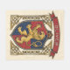 This personalized blanket features a heraldic crest. The central element is a golden Lion Rampant (standing on its hind legs) set on a quartered shield of red and deep blue. The shield is framed by intricate gold Celtic knotwork and topped with a small crown.