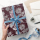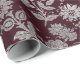 Royal Maroon Burgundy Floral Silver Roses Shiny Wrapping Paper