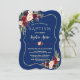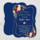 Royal Navy Blue Burgundy Floral Gold Girl Baptism Invitation