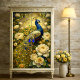 This opulent composition celebrates the majestic beauty of a peacock amidst a lush garden of cream and golden roses. The artwork masterfully combines Eastern decorative traditions with Western botanical detail, creating a richly layered visual feast. The peacock's iconic plumage, rendered in royal blues and gleaming golds, creates a natural mandala effect against the luminous background, while cream and butter-yellow roses unfurl in baroque abundance.