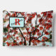 The Flamboyant, Royal Poinciana or Flame tree with its tropical orange and red flowers reaching up to a blue sky and white clouds is the inspiration of this unique and intricate patterned cosmetic or accessory pouch design. Personalise with both a Monogram and Name in red and black against a light blue inset on one side of the bag. This image is original botanical photography by JLW_PHOTOGRAPHY.