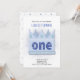 Royal Prince First Birthday Invitation. The design includes a blue crown illustration with faux royal blue glitter.