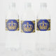 Prince water bottle labels with beautiful royal blue and gold crown on a royal blue and gold swirl background. These fancy prince water bottle labels are easily customised with text. You can also move and resize the crown as needed.