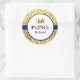 Royal prince stickers in blue and gold have a gold crown on top and say "PRINCE (your name)" on them. The background of these stickers are glittery gold. They have a navy blue trim on them.