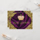 Elegant, fancy ornate royal pink and gold princess baby shower invitation. This beautiful gold swirls with royal purple satin background, and beautiful pink and gold crown royal baby shower invitation is easily customised for your event by simply adding your details in the font style and colour, and wording of your choice.