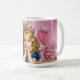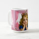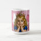 Elegant mug featuring a golden-haired girl with a jewelled crown in a pink royal bedroom, symbolising childhood wonder, elegance, and imagination.
