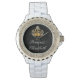 Classy girly princess monogram wristwatch including a gold looking royal monarchy crown with diamond jewel, all digitally printed on the watch face. Designed as an element display of British royalty with monogram name drop you can personalise with any lady or girl you wish to be princess or queen with royalty.