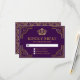 Elegant RSVP card featuring an elegant gold ornate border and beautiful crown against a dark purple background.