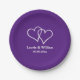 Royal purple interlocking heart custom party plate for wedding, engagement, couples bbq, anniversary etc.