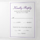 Traditional and classy all in one wedding invitation template with rsvp card and enclosure card attached, making this invitation suite convenient and budget friendly. The wedding invitation has your two initial monogram and your names in an elegant royal purple calligraphy inside of a thin border along with your favorite photo on the back. The RSVP postcard has your mailing address on the back and your guests simply cut off and mail back to you. NOTE: First class postage is required for the RSVP postcard. Postcard stamps will not be enough postage due to the size. This classic design is perfect for a formal wedding in the fall / autumn.