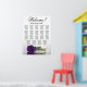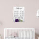 Enhance the elegance, sophistication, and charm of your wedding reception with this exquisite seating chart. This stunning contemporary floral design showcases a romantic long-stemmed royal purple rose resting horizontally and reflecting in a serene water pool. It can accommodate up to 190 guests, seated at 19 tables with 10 seats per table. The graceful calligraphy title states "Welcome! Please find your table" with room for the couple's names and wedding date at the bottom.
