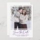 Your couple's photo is showcased on this elegant save the date card. A simple white frame gives it the importance it deserves. Save the date is written in a modern and trendy text. Two lines of text let you personalise your message. Designed to easily embellish any style photograph for any season. Very easy to customise.