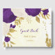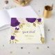 Romantic royal purple & white flowers with gold leaves botanical wedding guest book