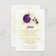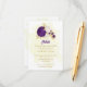 Romantic royal purple & white flowers with gold leaves botanical wedding details enclosure cards.