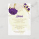 Romantic royal purple & white flowers with gold leaves botanical wedding details enclosure cards.