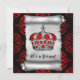 Elegant red parchment regal red and silver crown little prince baby boy shower invitation.