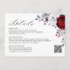 Elegant royal red white silver theme wedding details card with QR code featuring elegant bouquet of royal ruby red, crimson, silver, pure white colour rose flowers buds and eucalyptus leaves. Please contact me for any help in customisation or if you need any other product with this design.