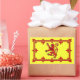Royal Standard Of Scotland, red lion rampant with a red border and yellow background.