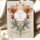 Step into an era of refined elegance with this regal botanical wedding invitation, inspired by the majestic Art Nouveau style. The design features a symmetrical display of botanical beauty, with rich copper-toned flowers taking centre stage, complemented by soft ivory petals and serene teal leaves. The exquisite details are framed by a delicate structure of pale blush lines that evoke the sophisticated swirls of the Art Nouveau movement, while golden-yellow buds add a touch of gentle contrast to the overall composition. This invitation is a perfect homage to the past, with a colour palette that brings a modern touch to a classic design.