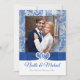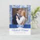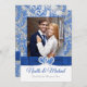 Royal blue, silver, white winter wonderland snowflakes photo template wedding invitation with PRINTED ON RIBBON, JEWELS, GLITTER.