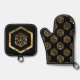RPG Dice | Gold Fantasy Tabletop Retro PnP Gamer Oven Mitt & Pot Holder Set