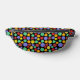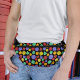 This colourful patterned fanny pack is perfect for fans of role-playing and fantasy board games. It features illustrations of different multi-sided dice in green, purple, orange, red and yellow set against a black background.