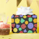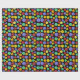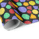 This colourful patterned wrapping paper is perfect for wrapping up gifts for fans of role-playing and fantasy board games. It features illustrations of different multi-sided dice in green, purple, orange, red and yellow set against a black background.