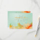 Beautiful contemporary abstract flowers in a bright bouquet of yellow, orange, lime green and aqua blue. Perfect for tropical or spring and summer weddings. Stylish enough for trendy modern brides, but with a touch of traditional class and vintage garden impressionism charm. Elegant and affordable custom wedding invites and cards priced for frugal brides on a budget. Shown in basic paper stock -- available in premium quality felt, linen, recycled, and metallic options. Customise it to change the font colours and styles. Please contact us if you would like this design modified to match your bridal party colour theme. Matching invitations, postage, and complete wedding packets available.