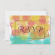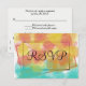Pretty gouache watercolor wedding theme in yellow, orange, pink, turquoise blue colours against white background. RSVP is written in elegant black script inside geometric double rectangles. Personalise backside with reception party details. Original Artwork by TamiraZDesigns.