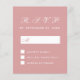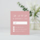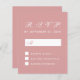A simple, minimalist budget RSVP for a wedding. It has only white text on dusty rose background. The title RSVP and the letter M are written in an elegant calligraphic script, the rest in caps.