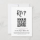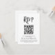 A black and white style wedding RSVP that allows you to reserve your spot at the party by using a QR-code. Use google to find a free QR code generator. You can then generate a code for your Facebook page, website, or personalised directory for fulfilling your reserved spots for your event.