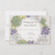 RSVP response cards that FIT ALL SIZE INVITATIONS. Matching RSVP Response Card to mail back to the bride (includes free white envelopes). The envelopes will need to be folded to fit in a square invitation envelope. Timeless and elegant yet Modern, contemporary, fresh and new. Typography text layout and art design. Perfect for a wedding in Country western desert setting in the spring or summer with rustic southwestern boho Bohemian natural elements as the backdrop and reception theme. For eco conscious couples that want a green colour palette for their wedding decor, and nature as their focus, these hand painted succulents in shades varying from dusty grey, to mint, sage and lime green all thew ay to a lavender purple wrap around your invitation text with an elegant simplicity. Entwined like your hearts - and your families. Can also be used for a rustic country barn setting, a backyard setting under the trees, or a farm or park venue. A complete wedding invitation set and collection are available to match. Copyright, Audrey Jeanne Roberts, all rights reserved.