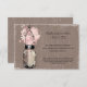 Perfect for a country style wedding or maybe you just love Mason Jars! Old vintage Mason Jar hanging on a hook with fireflies flying around.A Vintage distressed background (colour Autumn Brown DS321-9c) with the hanging Mason Jar and wildflowers in colours of shades of pale light pinks. If you have any questions on this design or want a colour change please email me paula@labellarue.com IF YOU NEED A MENU CHOICE ADDED OR ADDITIONAL INFORMATION LET ME KNOW. Also check for the WEDDING INVITATION & RECEPTION card to match!