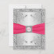 This hot pink and FAUX silver foil (printed effects) floral RSVP card with a fuchsia PRINTED ON ribbon and faux engraved look silver medallion matches the spring or summer wedding invitation shown below. All the text is customisable and so is the paper choice. If you need assistance customising this card, or if you require any other matching items in this same design, please email your request to niteowlstudio@gmail.com.
