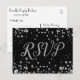 A pretty silver confetti look with a black background RSVP card.