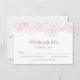 This elegant and pretty RSVP reply card features illustrated pink daisy flowers along the top. The back has a white geometric/floral pattern with a pink background colour which can be swapped out to any colour of your choice. The text can be customised to your liking for your special event. Matching invitation designs are also available.