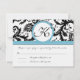 RSVP Cards-Black & White Damask Pool Blue Trim