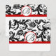 RSVP Cards-Black & White Damask Red Trim Card