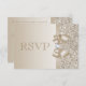 Elegant custom formal champagne RSVP wedding, neutral baby shower, birthday party or corporate events flat cards with a beautiful printed champagne colour sequins pattern, a cute shiny printed bow and ribbon and pretty printed diamond bling jewel. These classy, glamourous, fashionable invites are decorated both sides. Beautiful, chic, trendy, modern, contemporary invitations. Please note: All invites on Zazzle have flat printed images. Text, font and colour of font can all be customised. If you need assistance customising your product please contact me through my store. I will be happy to help. I have matching products in my store and many different colour options.