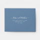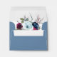 Elegant dusty blue RSVP envelope with delicate floral detail inside with watercolor flowers in burgundy, berry, raspberry, plum, dusty blue and navy hues. Front with RSVP name(s) and address in white. If you rather have your own calligrapher address envelope later on, simply erase text from text boxes to remove. Part of our "Berry, Blue and Burgundy Floral" collection.