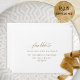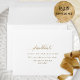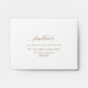Elegant white self- addressed RSVP envelope. Ability to add your name(s) and address or to erase from text boxes to add later at home. Graceful modern hand written calligraphy details. Inside as well in white colour, which can be changed to any other colour you like by selecting customise further and adding a different colour into "rectangular" shape covering all inside background. Note: typography is not in real foil, but rather print in a golden hue. Part of our "Elegant Calligraphy Minimalist Wedding" collection.