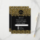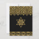 In a classically elegant colour palette of black and gold this invitation suite will stand out in honour of your daughter's special day! An RSVP Response card for the matching Bat Mitzvah Invites. Elegant and sophisticated grandeur for your special day. This Modern take on a vintage Art Nouveau style could easily grace an English Manor House Style soiree or an formal occasion. Shown here for a Bat Mitzvah celebration, this design is available in these other categories: Birthday party, Anniversaries, Wedding Invitations and Bridal showers. Also available in a range of colours. The background is a soft, aged, subtle damask floral pattern in black. The lace like borders are rendered in a very realistic looking faux gold glitter with twinkle light sparkles. An Art Deco frame with swirl scrolls in black and gold sets off the title of your event. On the reverse side is a beautiful Star of David symbol emblem. The template fields are easy to customise for your own personalised invitation wording.